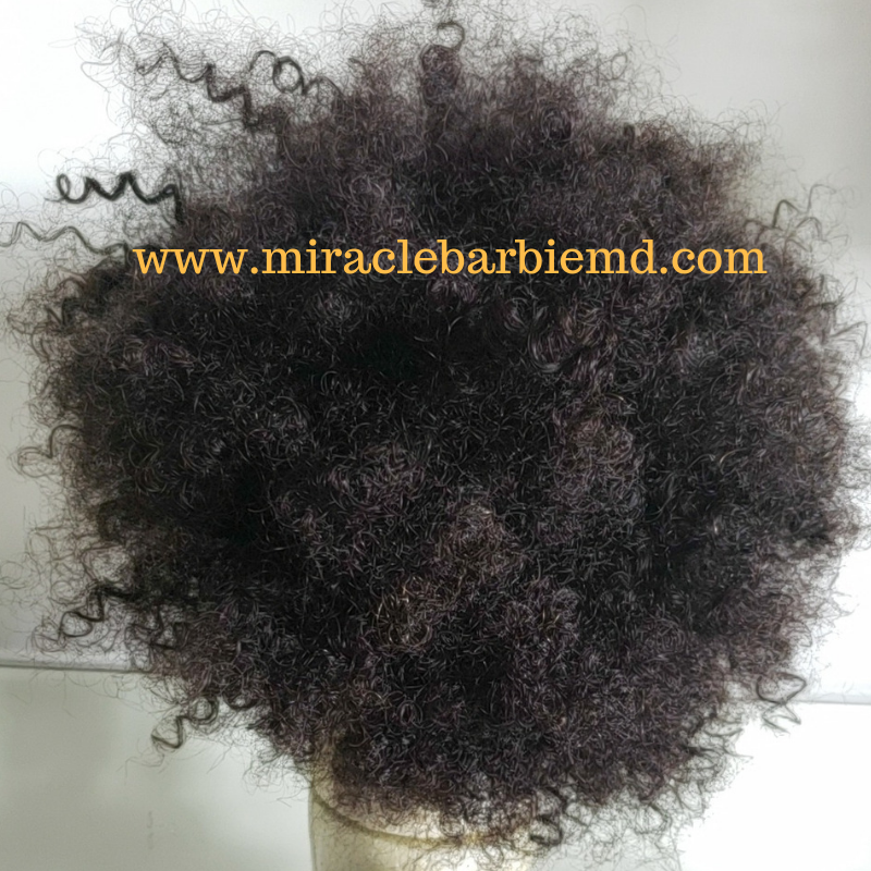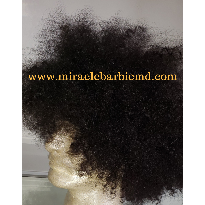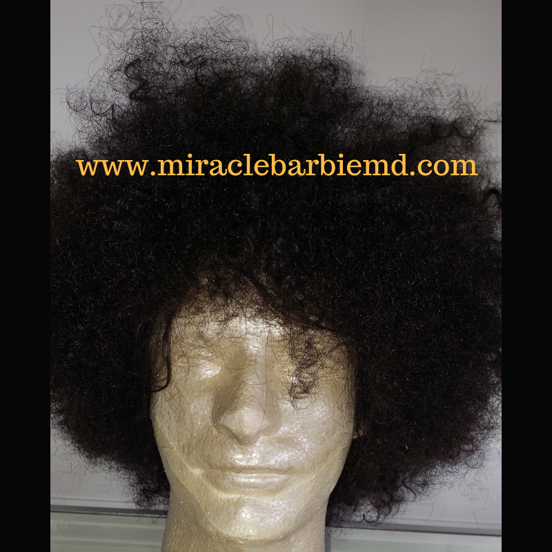 MiracleBarbieMD introduces the Full Lace Afro Kinky Male Unit, which has a natural lace hairline made of 100% human hair. Different styles that can be done with the unit are demonstrated.